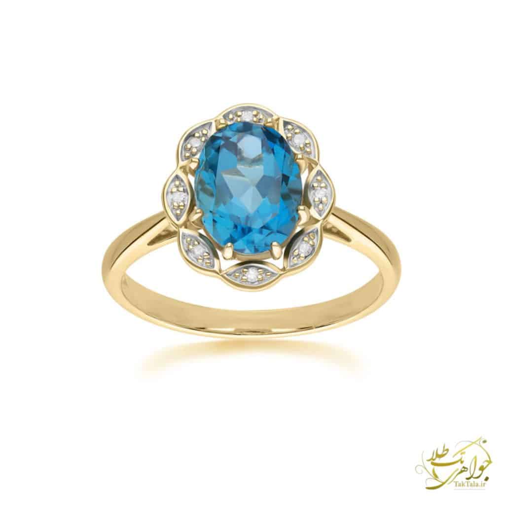 انگشتر توپاز آبی و برلیان زنانه طلا و جواهر