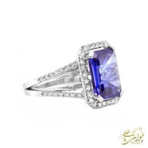 انگشتر طلا و جواهر تانزانایت زنانه و نگین برلیان