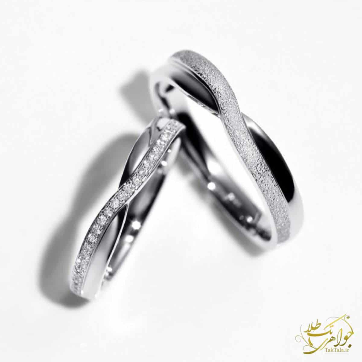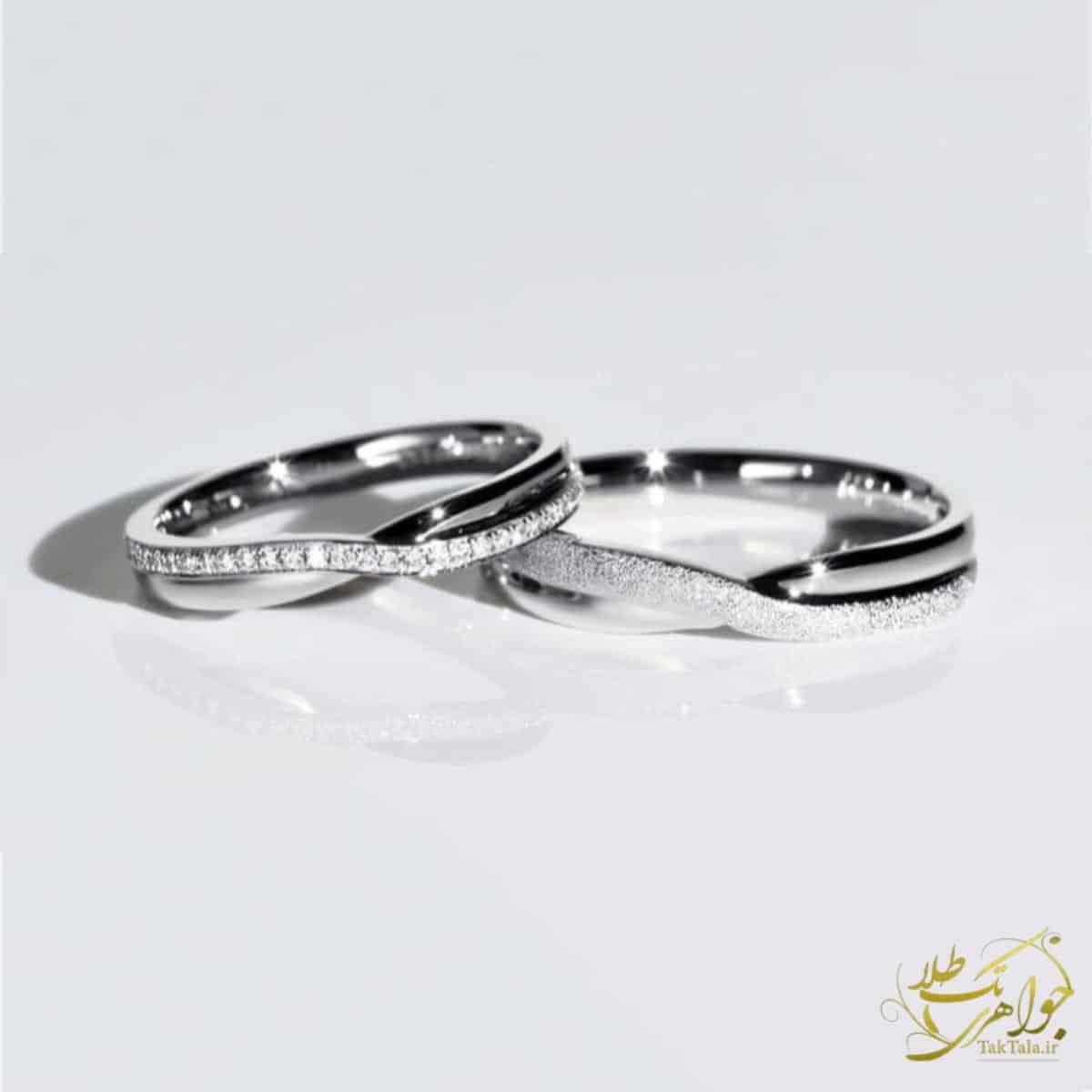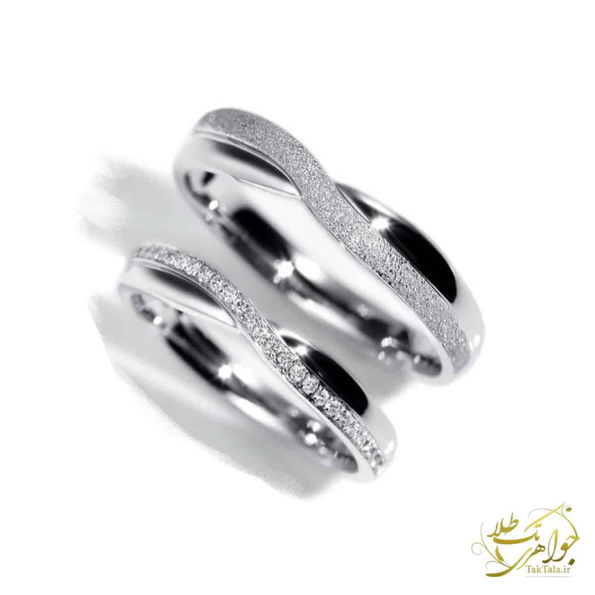 حلقه ازدواج ست طلا سفید و نگین برلیان، به وزن خالص ۱۰ گرم طلای سفید ۱۸ عیار و الماس تراش برلیان سفید و پاک.